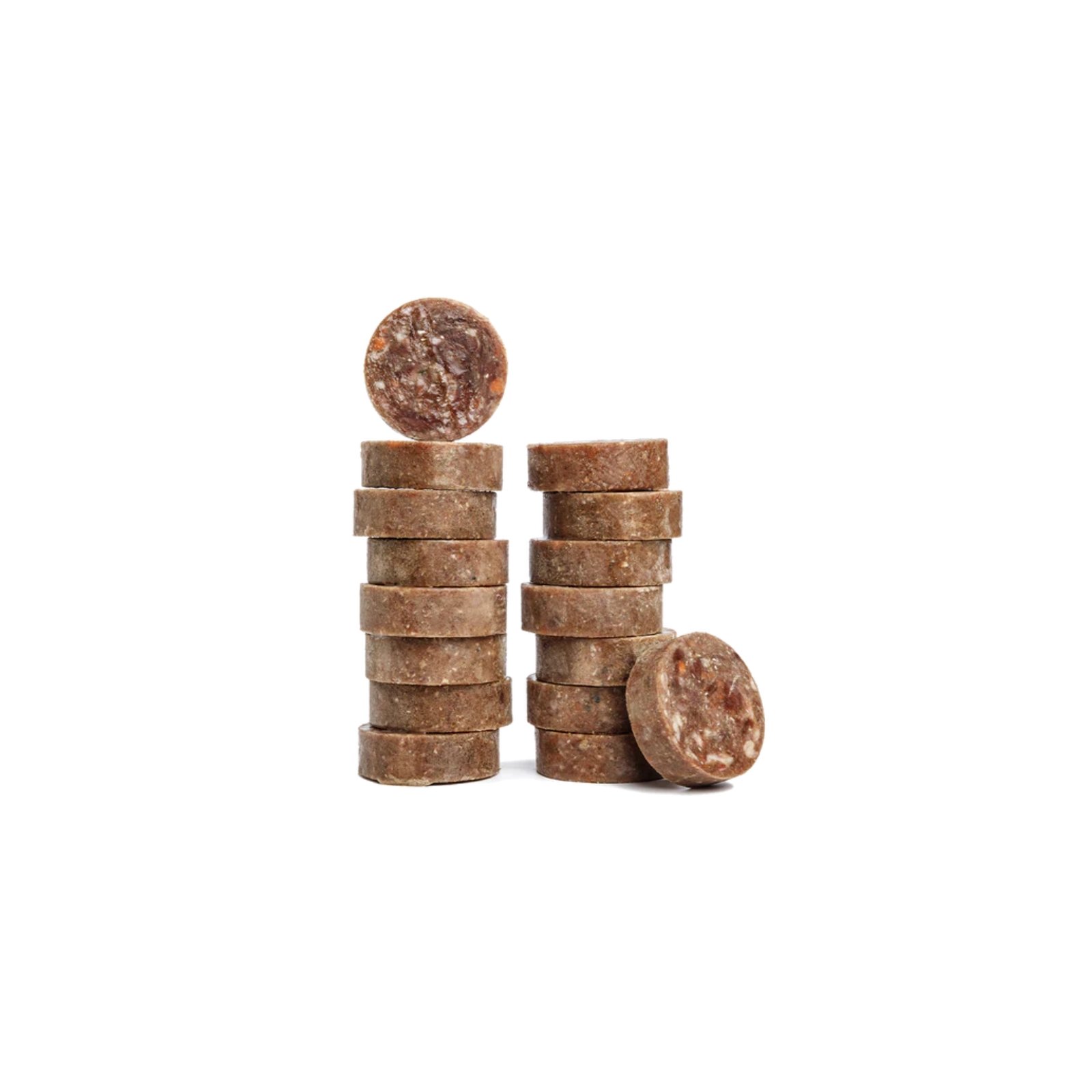 Prepared with carefully selected natural ingredients, this chicken-based formula supports lean muscle development, healthy digestion, and daily energy needs. The convenient medallion format allows for easy portioning and practical everyday feeding.