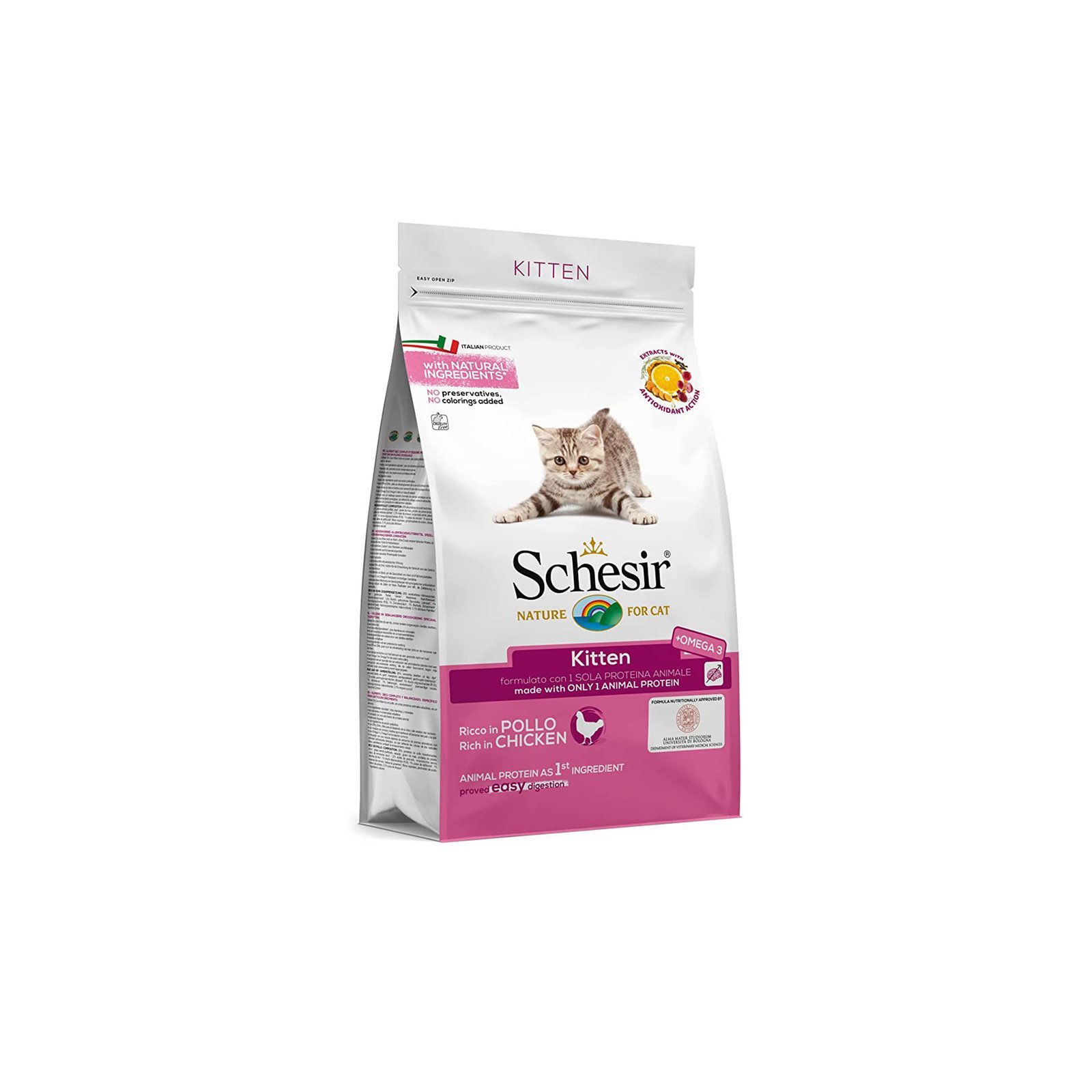 SCHESIR Kitten Chicken 1.5kg is a complete and balanced dry food specially formulated for growing kittens. Made with high-quality chicken as the main ingredient, it provides all the essential nutrients, vitamins, and minerals your kitten needs for healthy growth, strong muscles, and overall well-being.