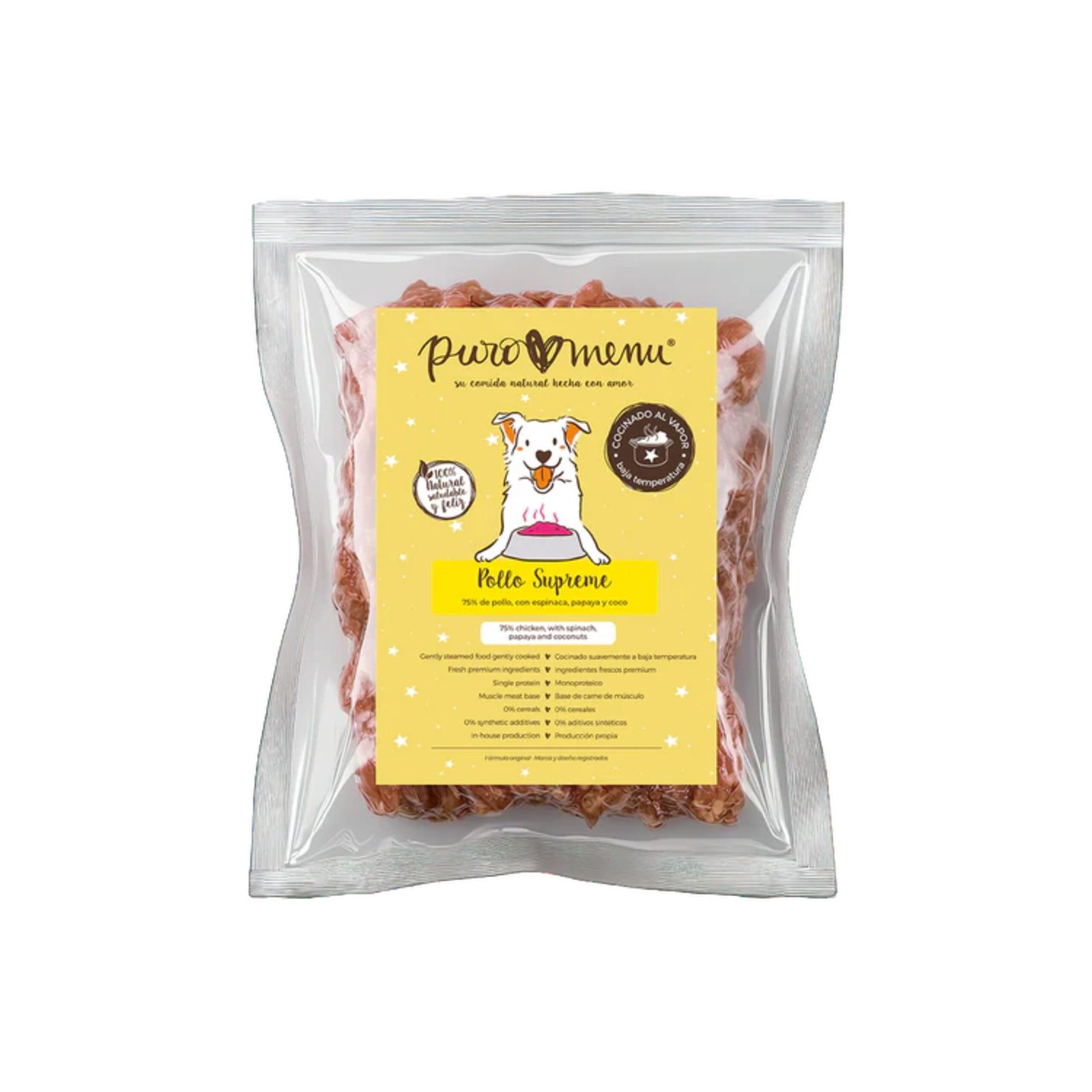 PURO MENU Chicken Supreme Cooked is a premium, gently‑steamed dog food made with high‑quality chicken and carefully selected natural ingredients. This complete and balanced cooked meal is prepared at low temperatures to preserve nutrients and flavour, providing easily digestible nourishment that supports lean muscle, healthy digestion, and overall wellbeing.