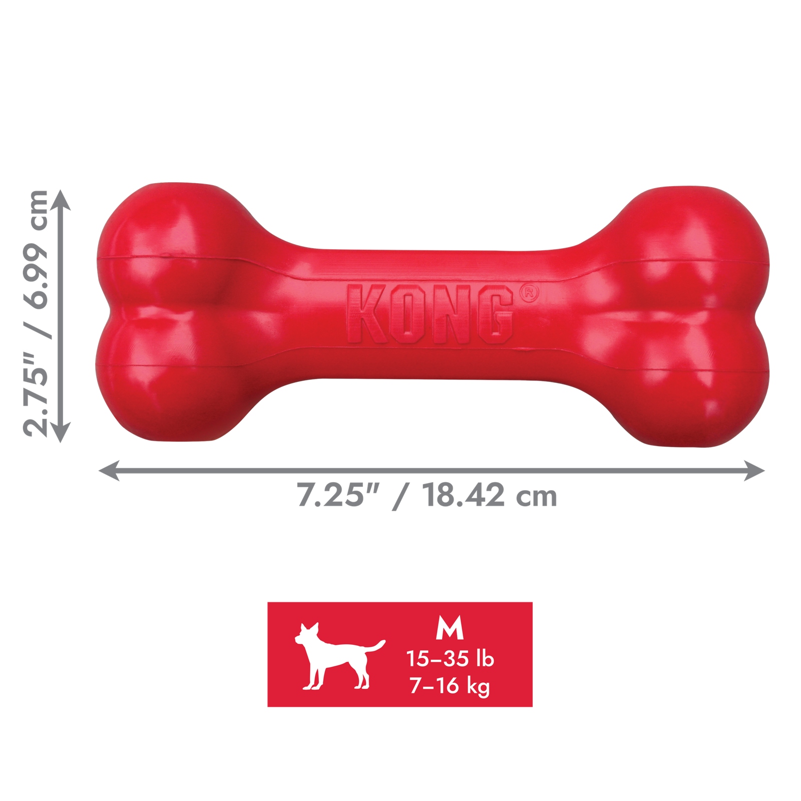 KONG Goodie Bones satisfy dogs’ scavenging instincts while promoting oral health. Stuff it with Easy Treat, Ziggies, or other yummy treat for a fun challenge. This toy is made with high-quality natural rubber to withstand countless hours of chewing. Unlike nylon, hard plastic, sticks, or bones, rubber doesn’t splinter and is gentle on teeth.