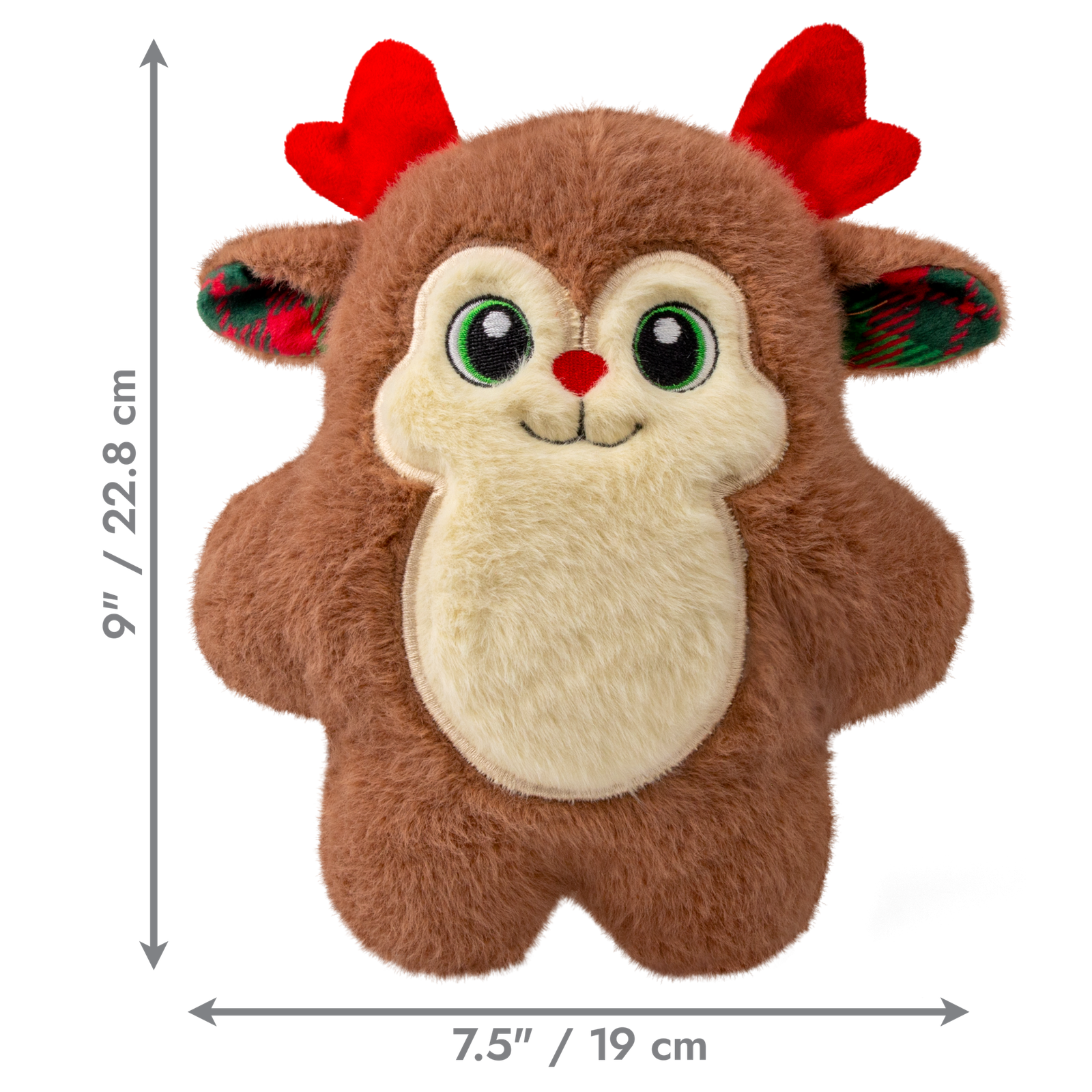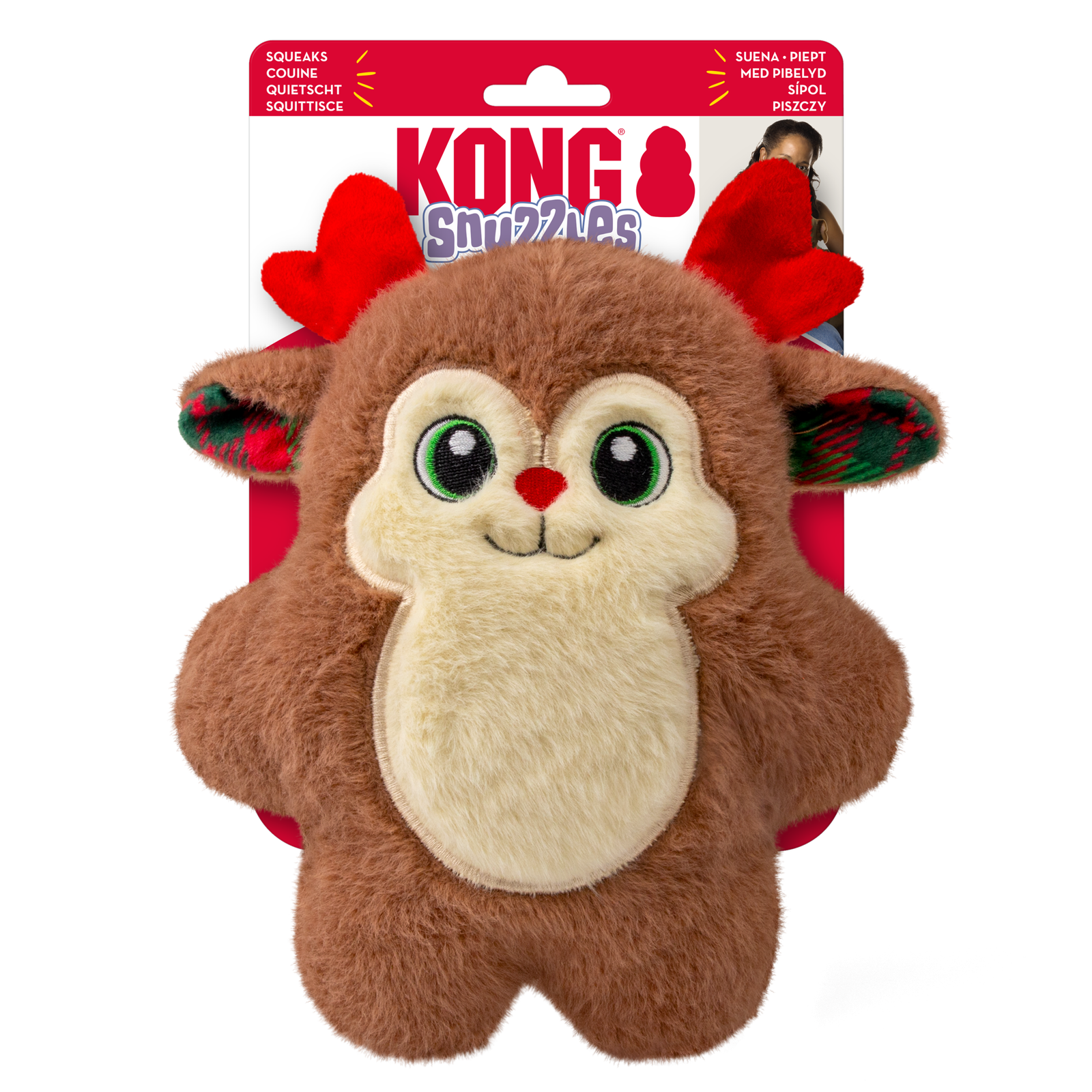 KONG Holiday Snuzzles Reindeer is plump-full of fun! Filled with a full-body squeaker that gives a long, loud call and a super-plush exterior that is perfect for holiday snuggles. The dense mouthfeel extends engagement by rewarding appropriate chewing with every bite. Ideal for indoor fun when the weather outside is frightful, the flat shape is ideal for dogs of all different sizes.