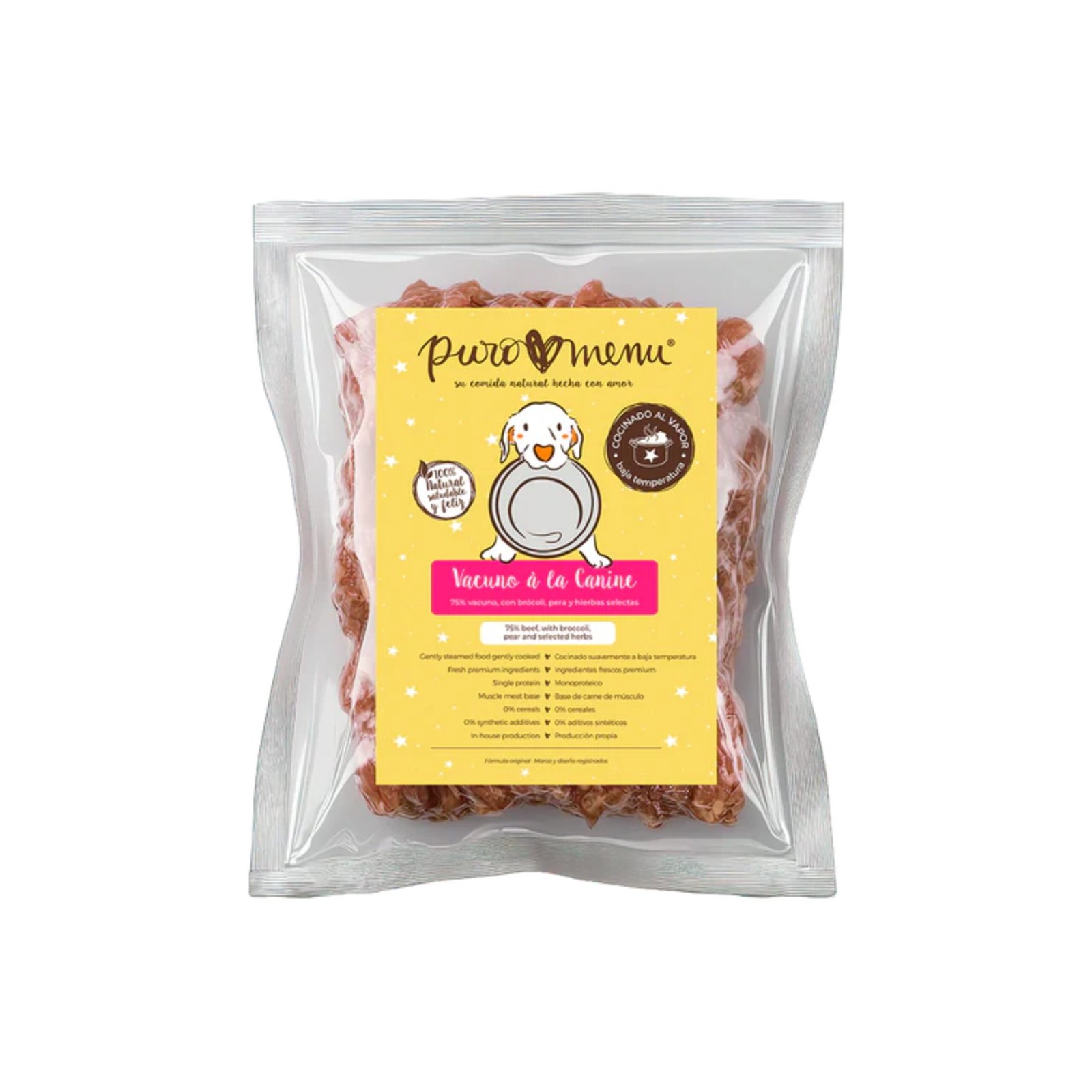 PURO MENU Beef À La Canine Cooked is a gently cooked, complete dog food made with high-quality beef and carefully selected natural ingredients. This wholesome recipe is designed to provide balanced nutrition while supporting digestion, muscle strength, and overall wellbeing.