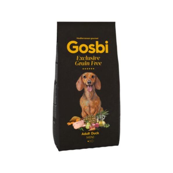 Gosbi Exclusive Grain Free Adult Duck Mini is a natural, hypoallergenic recipe tailored for toy and mini dogs.