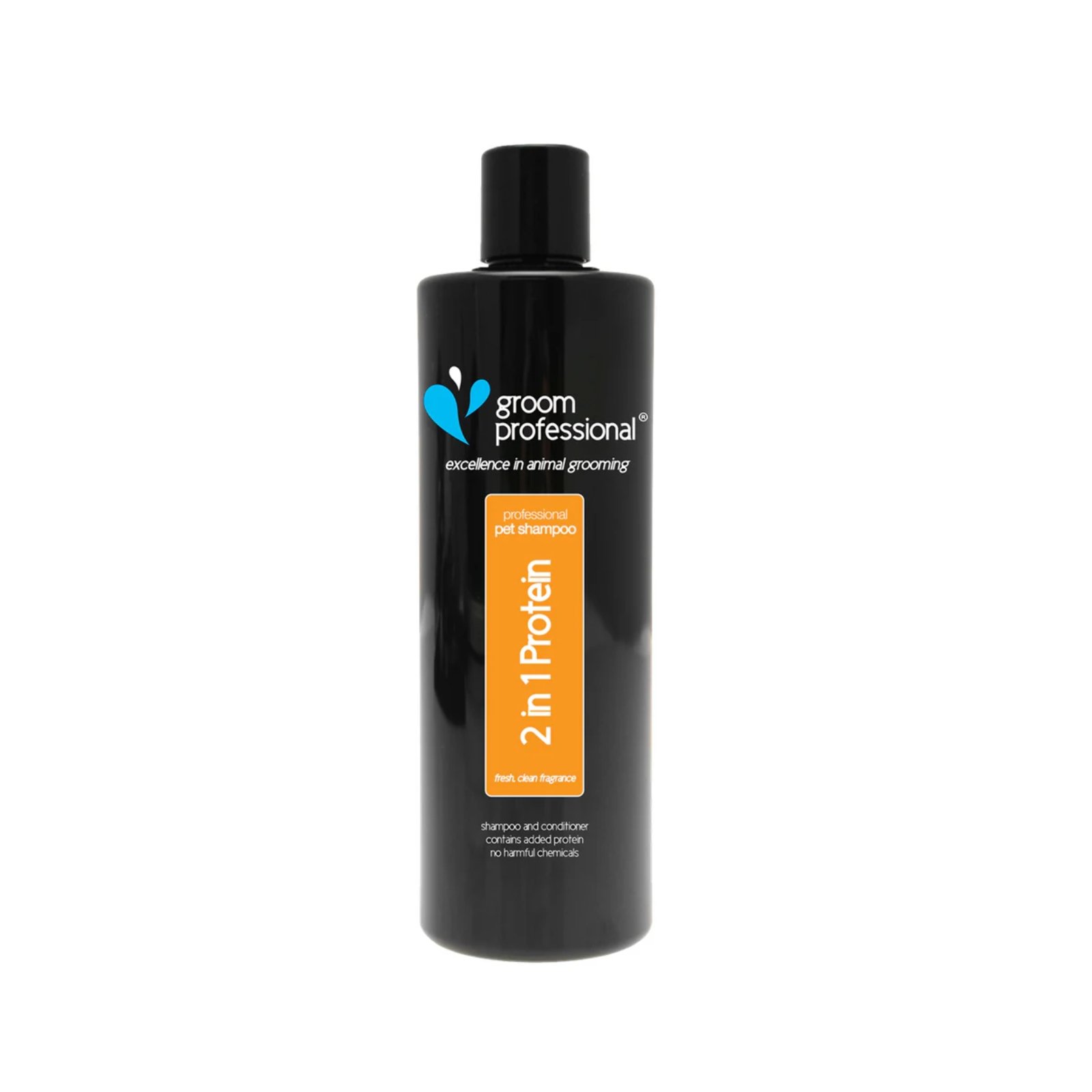 GROOM PROFESSIONAL 2in1 Protein Shampoo 350ml is a conditioning dog shampoo designed to help strengthen the coat while making grooming easier and more efficient. Formulated with added protein, it helps improve the condition of dull, dry coats and leaves the fur looking healthy with a natural shine.