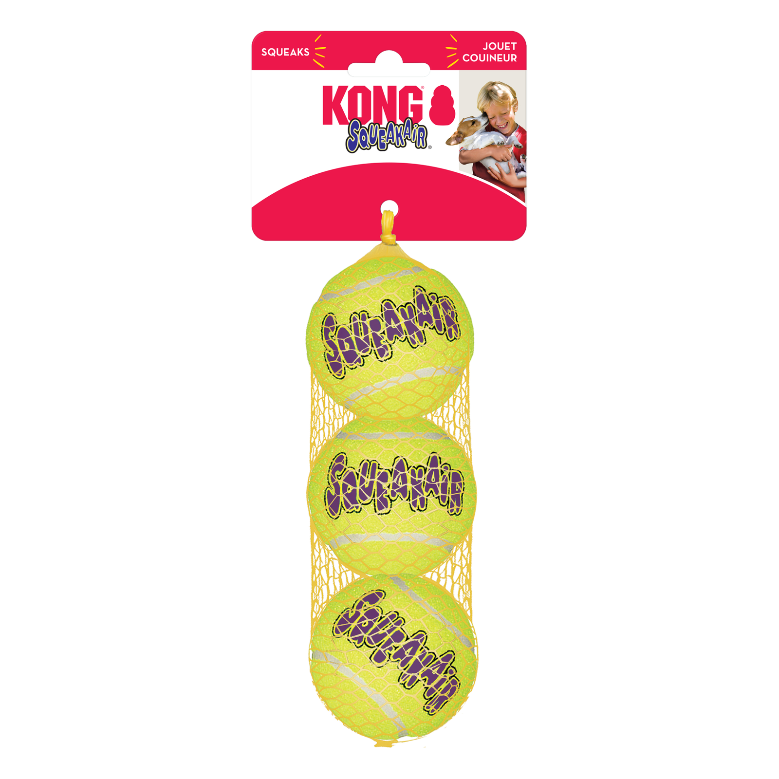 The KONG SqueakAir® Ball combines two classic dog toys – the tennis ball and the squeaker toy – to create the perfect fetch toy. Our durable, high-quality SqueakAir® Tennis Ball will not wear down your dog’s teeth. It’s made with a special non-abrasive felt.