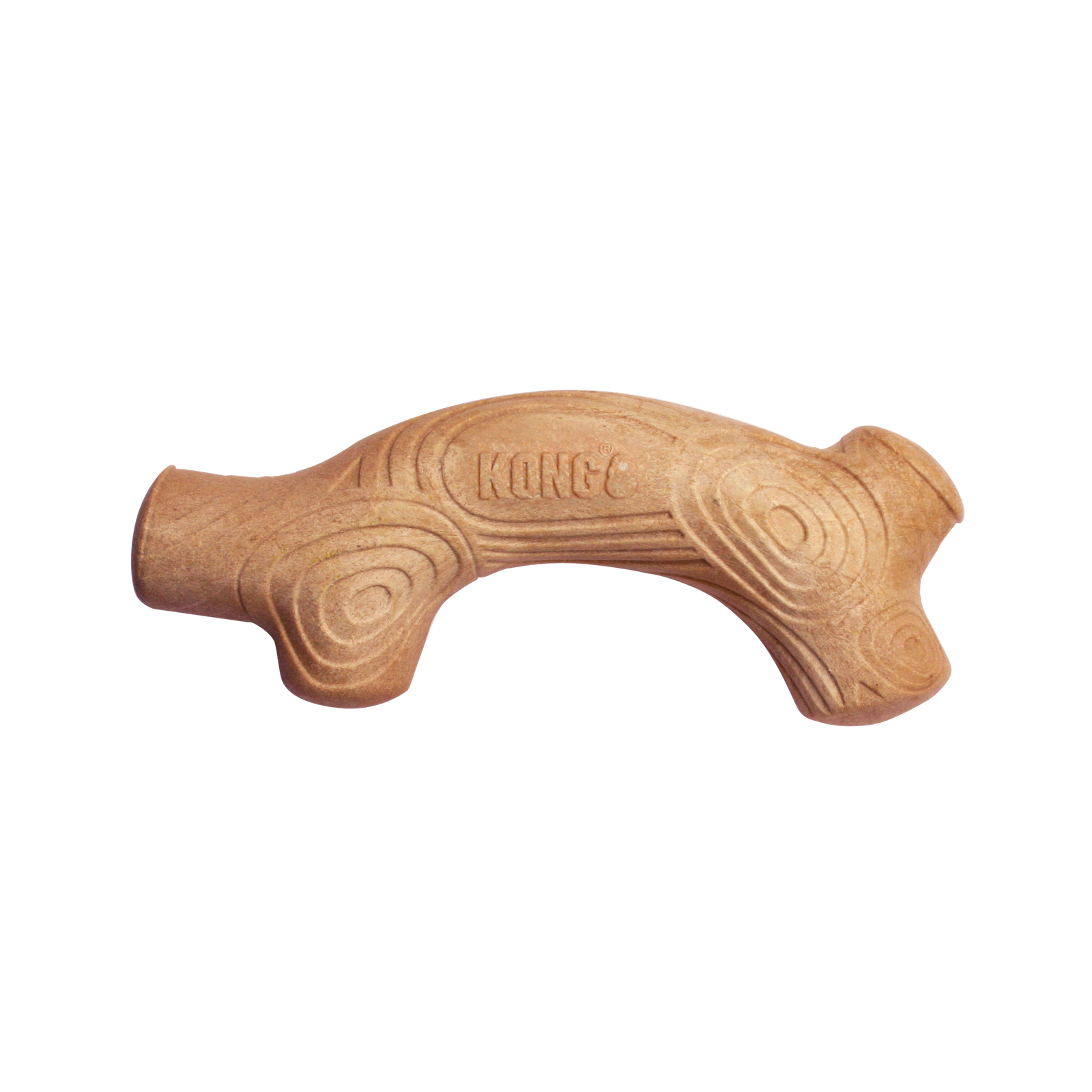 KONG ChewStix Ultra is a toy that contains real wood making it sure to delight those dogs that love to chase and chew sticks while providing a safer chewing solution. KONG ChewStixs also feature a bacon scent that entices and rewards appropriate chewing behavior. As dogs chew, the toy naturally flakes vs. splintering while being built for durability both combining to create chewing bliss that is built to last. Rounded edges and grooves continue the engagement while adding to the safety of the toy and helping clean teeth and gums.