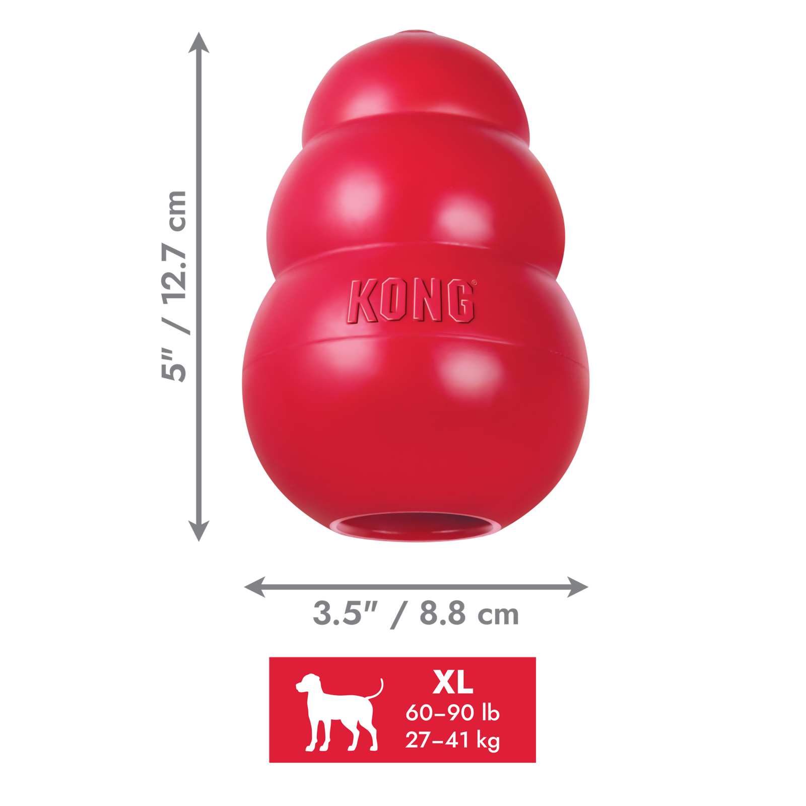 The KONG Classic is the gold standard of dog toys and has become the staple for dogs around the world for over forty years. Offering enrichment by helping satisfy dogs’ instinctual needs, the KONG Classic’s unique natural red rubber formula is ultra-durable with an erratic bounce that is ideal for dogs that like to chew while also fulfilling a dog’s need to play. Want to extend play time? Be sure to stuff with tempting bits of kibble and entice with a dash of peanut butter. Add to the fun by adding KONG Snacks and topping with KONG Easy Treat.
